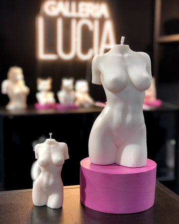 It all began with Lucia’s curiosity: why are candles so predictable? She imagined a candle as art – a piece to cherish on your shelf, or to light and let come alive. This duality, beauty and function in one, is what defines Galleria Lucia’s functional art. What began as body-positive sculpture candles has grown into full wax haven: